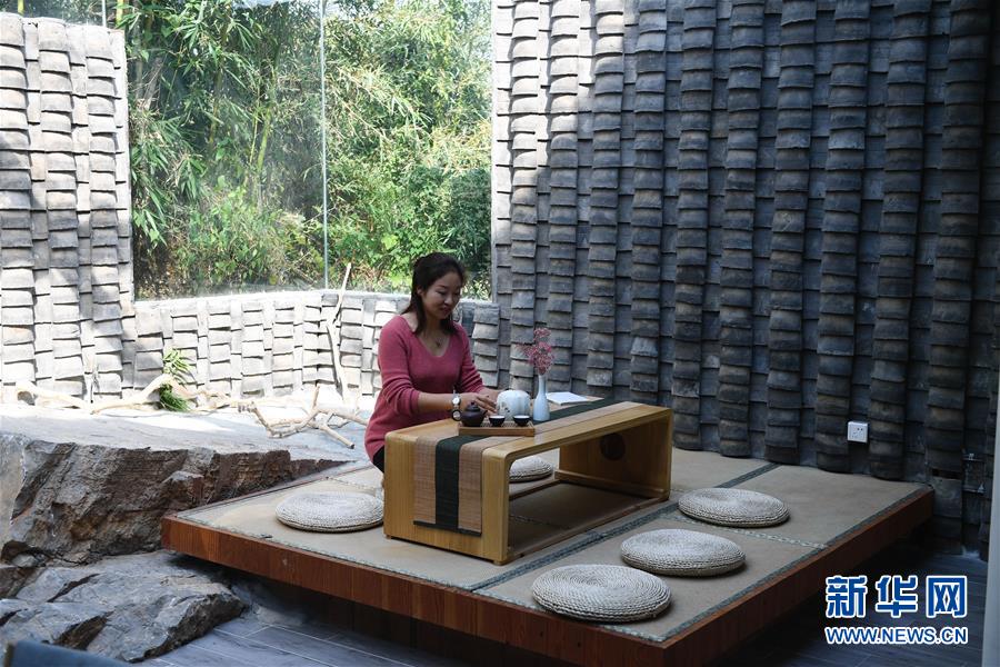 10月27日,在蘇州市吳中區(qū)東山鎮(zhèn)三山村一家民宿,工作人員在為客人準(zhǔn)備茶水。 新華社記者季春鵬/攝