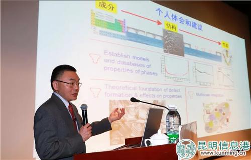 昆明信息港訊 記者勞學(xué)麗 10月30日,云南科學(xué)大講壇第七十二講在昆明理工大學(xué)伍成集會(huì)堂開講,美國(guó)俄亥俄州立大學(xué)材料系教授趙繼成進(jìn)行了題為“材料基因組計(jì)劃與快速材料設(shè)計(jì)”的主題演講。云南省科學(xué)技術(shù)院院長(zhǎng)侯樹謙、昆明理工大學(xué)副校長(zhǎng)易健宏,云南省有關(guān)高校和科研單位領(lǐng)導(dǎo)、科技工作者、企業(yè)家、在讀學(xué)生及關(guān)心科技事業(yè)的社會(huì)各界人士在現(xiàn)場(chǎng)聆聽了趙繼成的分享。