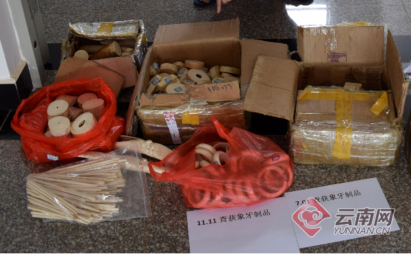 經(jīng)過(guò)審訊,民警發(fā)現(xiàn)這個(gè)團(tuán)伙成員與之前查辦的另一起案件有關(guān)聯(lián),與在2014年11月11日在勐養(yǎng)查獲的29.02公斤象牙制品案件串聯(lián)了起來(lái)。