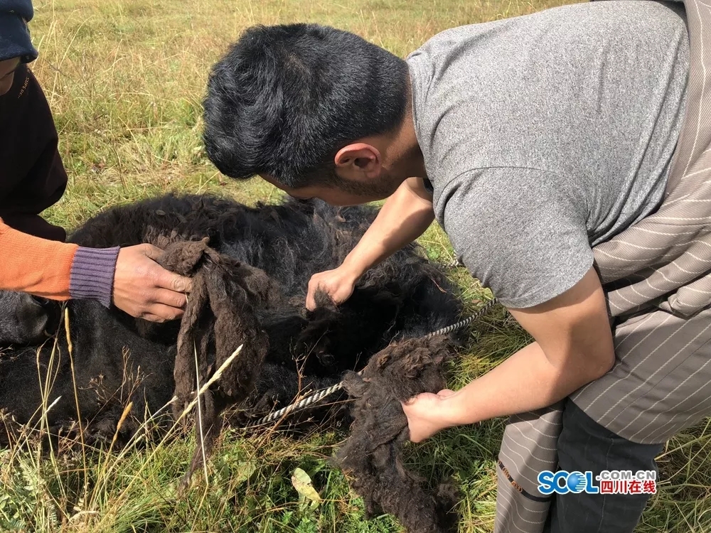 記者:你剛剛和牦牛來了個抱摔,看來采牛絨也是挺危險的。在這個過程中,你害怕過嗎?