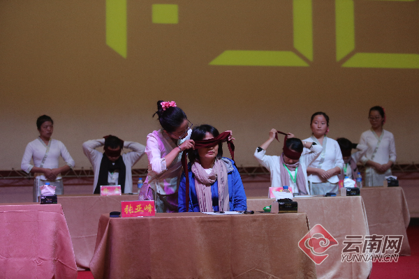在晉級賽的論茶環(huán)節(jié)中,采取從30款普洱比賽茶品中隨機抽取12款的方式,每款茶葉沖泡5克、5分鐘出湯,選手以辨干茶、辨茶湯、辨葉底的“三辨法”辨別茶品,并對茶品的嘜號和批次限時作答。在難度最大的決賽中,則采取“盲品普洱”的方式,9名選手被蒙上眼睛,僅憑舌尖感知茶湯,判斷茶品的嘜號和批次,上演了一場精彩的“舌尖對決”。