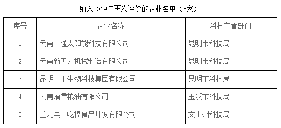 此次還公示了,云南一通太陽能科技有限公司等5家企業(yè),被納入2019年第十批試點企業(yè)進行評價;有5家企業(yè)未通過評價,委托科技主管部門密切跟蹤公司資產(chǎn)處置狀況,視情況追回的資產(chǎn)由科技主管部門調(diào)配使用。