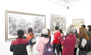 圖為市民在觀看畫展。 記者楊艷輝攝
