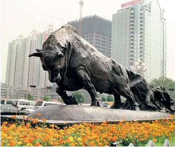 在深圳市委大院大門口,有一座青銅雕塑拓荒牛。