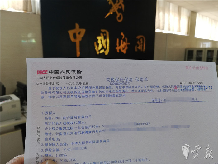 11月1日,關(guān)稅保證保險(xiǎn)作為我國(guó)首例被保險(xiǎn)人是政府機(jī)關(guān)的保險(xiǎn)產(chǎn)品正式在全國(guó)實(shí)施。11月4日,河口韻合商貿(mào)有限公司憑關(guān)稅保證保險(xiǎn)單在昆明海關(guān)隸屬河口海關(guān)順利辦理了一票進(jìn)口鐵礦砂通關(guān)手續(xù),這是昆明海關(guān)首次憑保險(xiǎn)公司出具的關(guān)稅保證保險(xiǎn)單擔(dān)保通關(guān)。此保單由中國(guó)人保財(cái)險(xiǎn)云南分公司簽發(fā),采用國(guó)際貿(mào)易“單一窗口”進(jìn)行報(bào)關(guān)。相比傳統(tǒng)擔(dān)保模式,大幅降低了資金占用率,為企業(yè)釋放了大量的流動(dòng)資金,有利于企業(yè)減負(fù)增效。