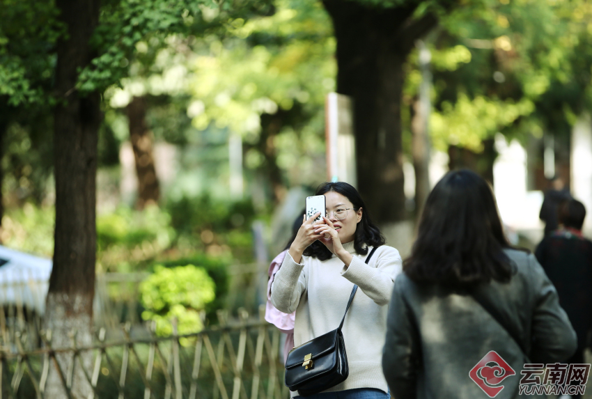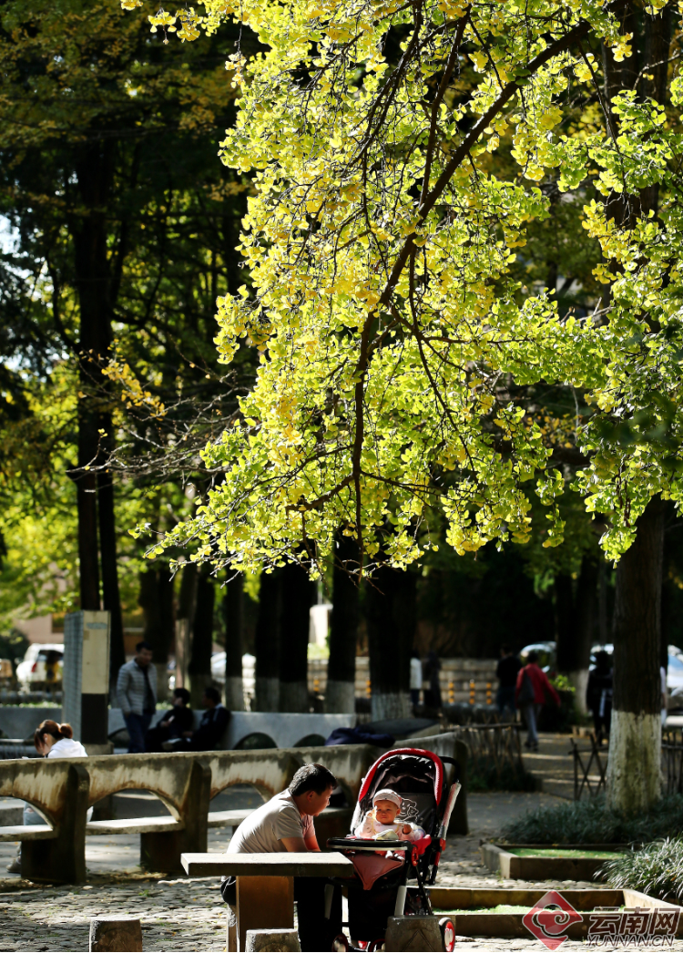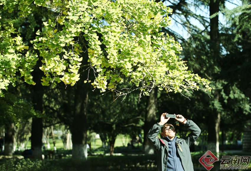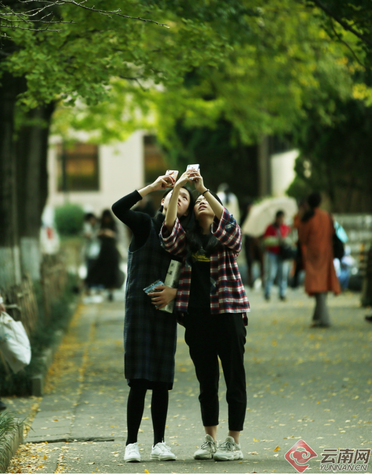 11月的深秋,位于昆明翠湖旁的云南大學(xué)銀杏大道,從樹(shù)枝上到地面上的銀杏葉片隨風(fēng)飄揚(yáng),把天與地染得金黃。每天有無(wú)數(shù)的學(xué)生、市民和游客會(huì)到此處游玩,有的靜靜地坐在樹(shù)下看書(shū)、聊天,更多的人會(huì)用手機(jī)和長(zhǎng)短相機(jī)鏡頭捕捉那一枝枝一片片秋末的金黃。