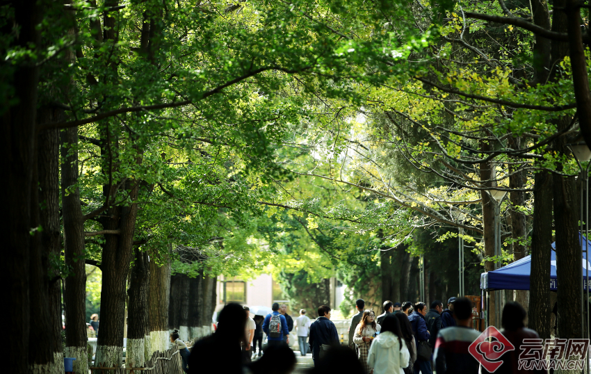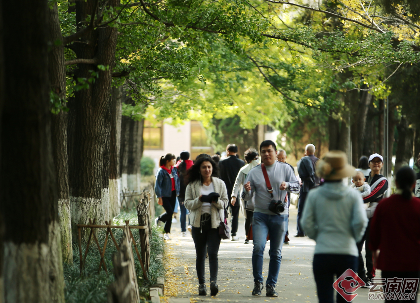 云大銀杏大道曾入選過(guò)全國(guó)十大高校美景,是云南欣賞秋葉最佳的地方之一,被稱(chēng)為昆明八大賞銀杏好去處。走進(jìn)銀杏大道,能感覺(jué)到這所百年大學(xué)的歷史文化。趁著這幾天陽(yáng)光燦爛,去云大銀杏道走走吧。(云南網(wǎng) 記者張彤 攝影報(bào)道)