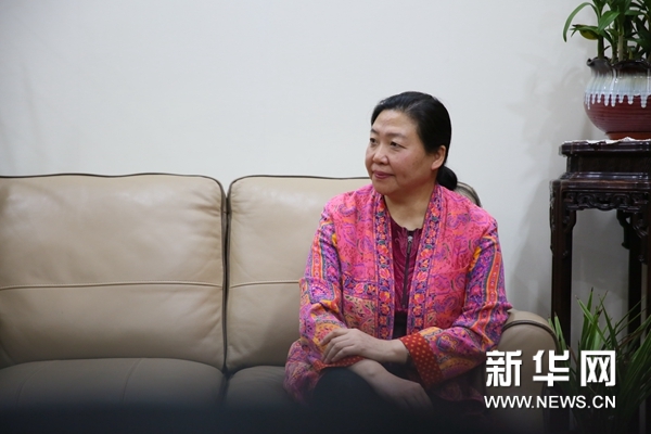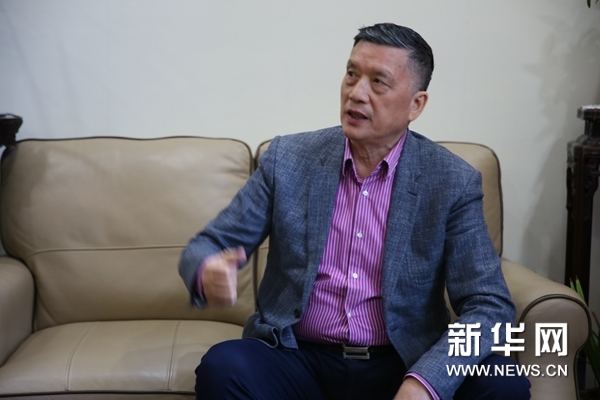 《遠(yuǎn)去的恐龍》創(chuàng)意、編劇、總制作、總策劃賀立德(上)、覃曉梅接受新華網(wǎng)采訪。新華網(wǎng)記者孫廣見攝