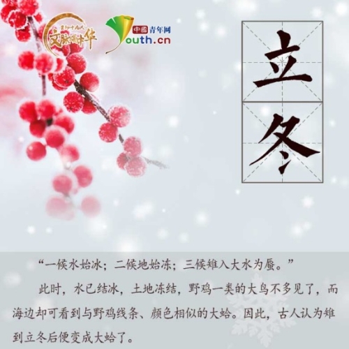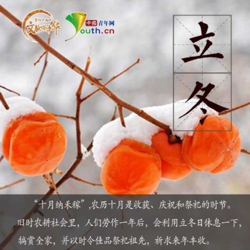 江水初凝,萬(wàn)物收藏,規(guī)避寒冷,今日19時(shí)32分,立冬。在古代,人們將立冬與立春、立夏、立秋合稱“四立”,是重要的節(jié)日。除了吃餃子外,立冬還有哪些有趣的民俗文化?一起來(lái)了解一下!(中國(guó)青年網(wǎng) 記者秦亮 王冬偉)