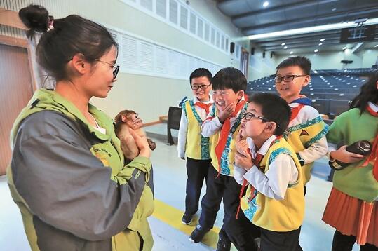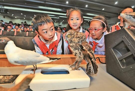 11月7日,一節(jié)生動的野生動物保護(hù)課在云南師范大學(xué)附屬小學(xué)文林校區(qū)開課。省森林公安局和云南野生動物園首次將野生動物帶進(jìn)校園,并通過圖、文、視頻為孩子們講解野生動物的生存環(huán)境,保護(hù)野生動物的重要意義。圖為孩子們正在近距離接觸動物和標(biāo)本。(云南日報 記者陳飛)