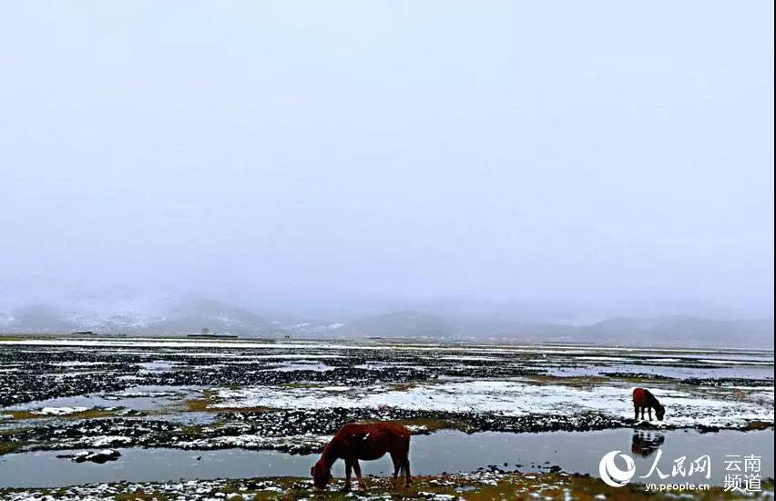 11月7日,立冬,云南香格里拉迎來入冬以來的第一場雪,森林湖泊、山間田野堆滿了積雪,迪慶高原呈現(xiàn)出一派銀裝素裹的景象。