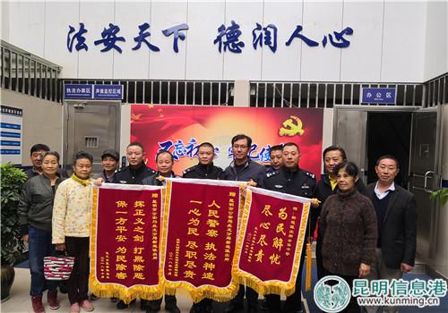 11月8日,昆風小區(qū)居民和昆風集團對新迎派出所及時處理、為民解憂的行為感激不已,特意定制錦旗當面感謝。