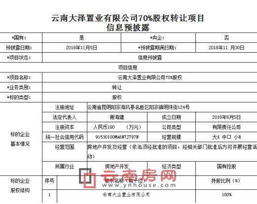 云南大澤置業(yè)股權(quán)轉(zhuǎn)讓預(yù)披露公告