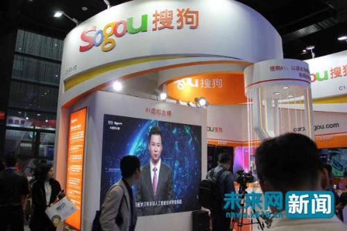 圖為博覽會(huì)上搜狗虛擬主播展臺(tái)。未來網(wǎng)記者 鞏帥 攝