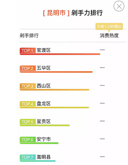 在天貓公布的昆明“剁手力排行”中