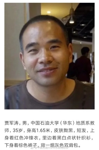 中國石油大學(xué)(華東)官網(wǎng)顯示,賈軍濤今年35歲,2010年進入高校工作,為地球與科學(xué)技術(shù)學(xué)院地質(zhì)系講師。賈軍濤家人曾在微信公眾號上發(fā)布“尋人啟事”,稱賈軍濤10月17日到云南省玉龍雪山附近進行野外勘探,于當天下午6點左右在麗江玉龍雪山珍珠湖一帶失聯(lián)。