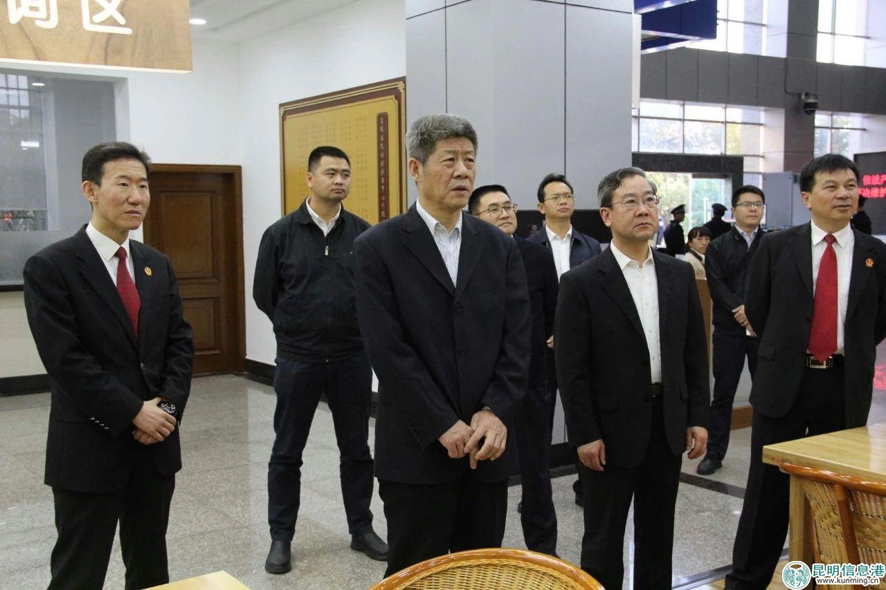 昆明信息港訊 2018年11月6日,最高人民法院黨組成員、副院長、第五巡回法庭庭長李少平到云南省嵩明縣人民法院調(diào)研司法體制改革工作。云南省高級(jí)人民法院院長侯建軍、昆明市中級(jí)人民法院院長董國權(quán)、中共昆明市委副秘書長楊蜀軍、中共嵩明縣委書記楊相來、副書記潘加智等陪同調(diào)研。