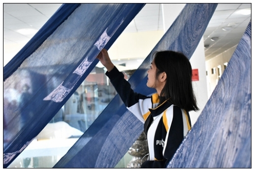 運(yùn)用蠟染技藝制作的“匠生萬物”活動(dòng)主題展示