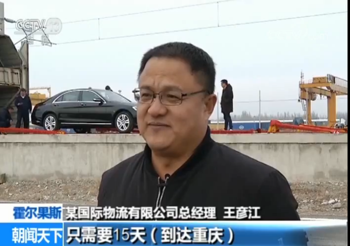 新疆中盛國際物流有限公司總經(jīng)理 王彥江:過去海運(yùn),包括現(xiàn)在也在用的海運(yùn),一共是需要60天。我們這條線開通以后只需要15天到達(dá)重慶。經(jīng)過這次測試以后,客戶將把大量的車走這條線路,計(jì)劃明年有2萬輛從這條線路上走,這樣會(huì)給客戶節(jié)約大量的資金成本 。