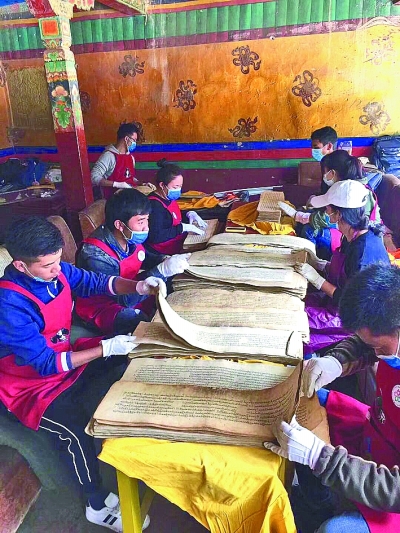 志愿者在西藏進(jìn)行古籍普查。資料圖片