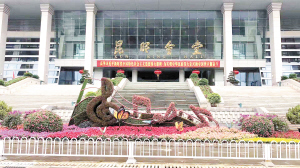 昆明會(huì)堂前一組形似音符的立體花壇,此前曾放置在南屏街廣場(chǎng)(下圖)。 記者楊艷輝/攝