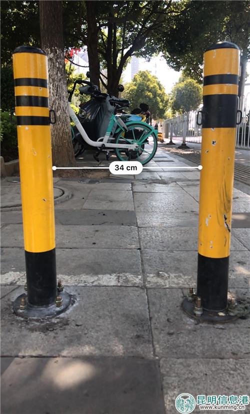 昆明信息港訊 記者俞逍 近日,網(wǎng)友“海爾兄弟”在彩龍社區(qū)“政民互動(dòng)”欄目發(fā)帖,反映西山區(qū)廣福路紅星美凱龍門(mén)口的人行道上加裝了黃色隔離樁,本意是阻攔車(chē)輛進(jìn)入人行道,結(jié)果導(dǎo)致嬰兒推車(chē)難以通行,電動(dòng)車(chē)等車(chē)輛卻能從隔離樁縫隙進(jìn)入人行道停放,而行人也僅有40公分的盲道可通行。