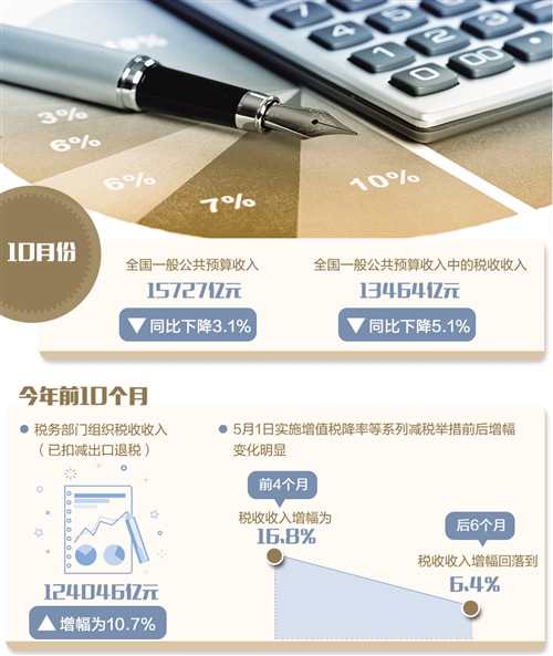 財政部最新數(shù)據(jù)顯示,10月份財政收入出現(xiàn)今年以來首次同比下降,反映出減稅降費(fèi)成效明顯。