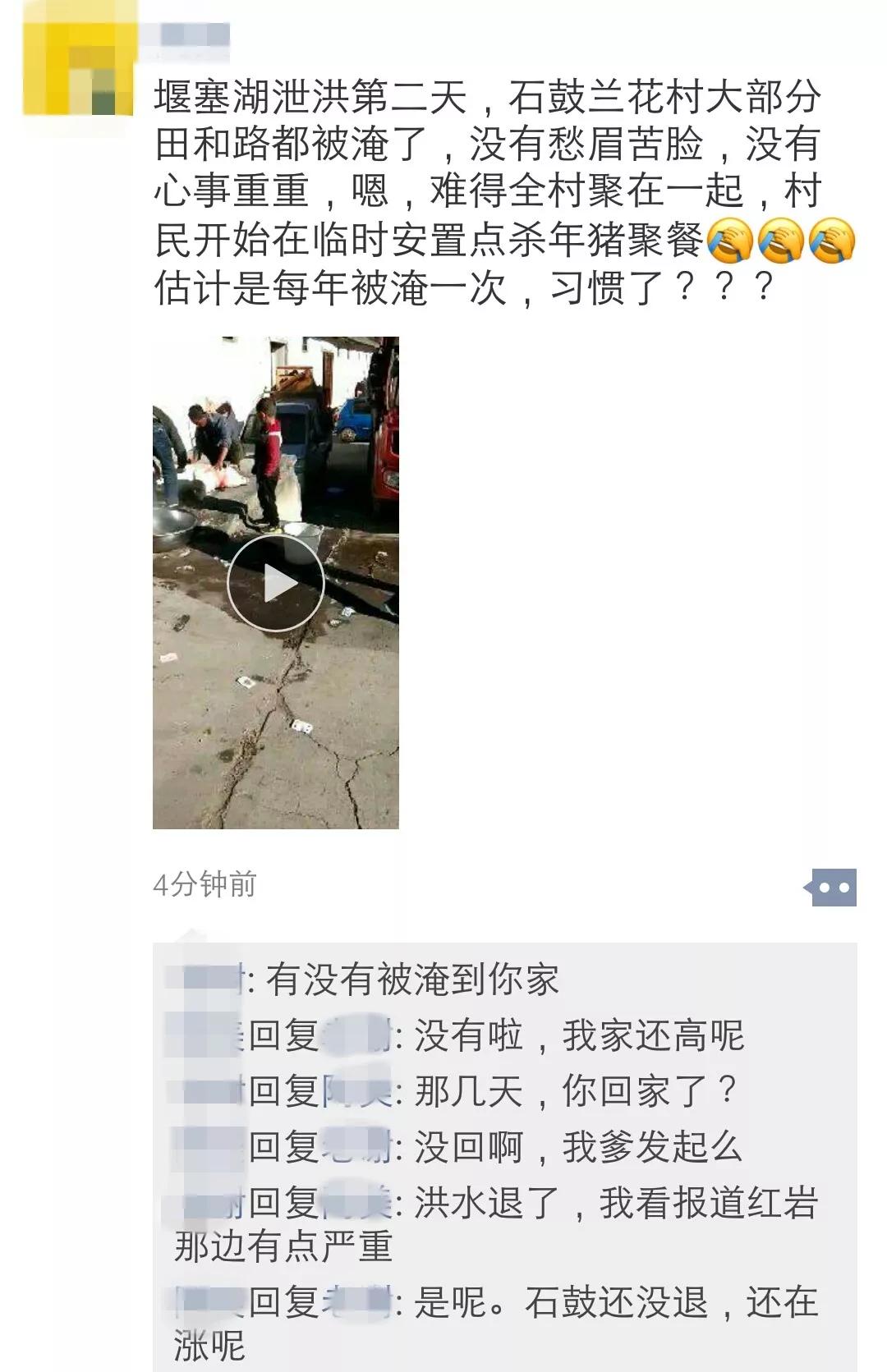 11月15日,就在堰塞湖泄洪過境麗江第二天,盡管石鼓蘭花村大部分田和路都被淹了,但是,村子里,沒有愁眉苦臉,沒有心事重重,難得全村聚在一起,村民開始在臨時安置點殺年豬。