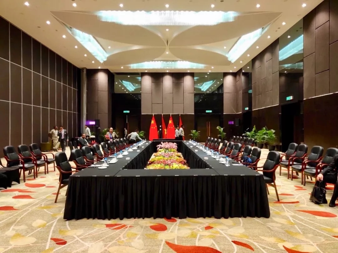 △這是會見奧尼爾總理之前的會場情景。當天習近平與太平洋島國領(lǐng)導人的多場雙邊會見也都是在這個會場舉行。(央視記者李曉周拍攝)