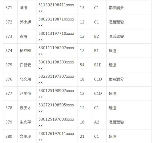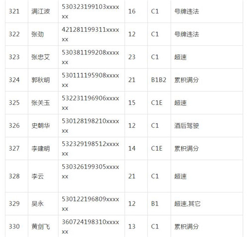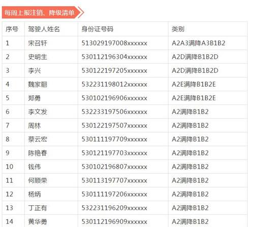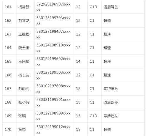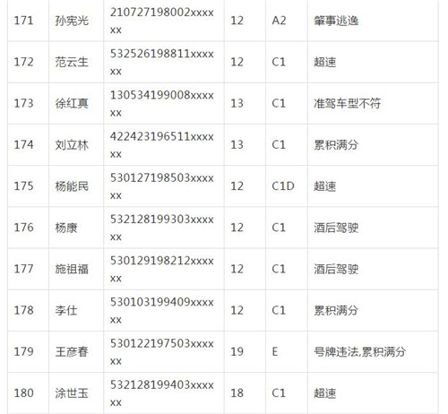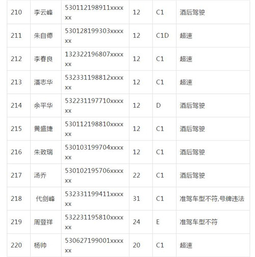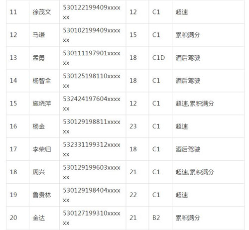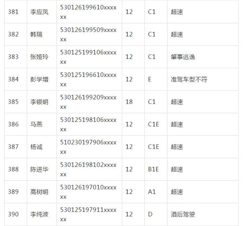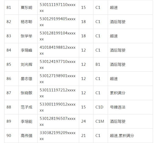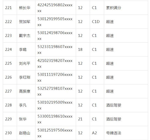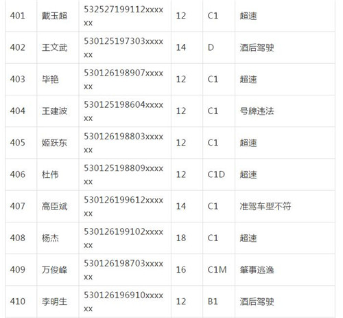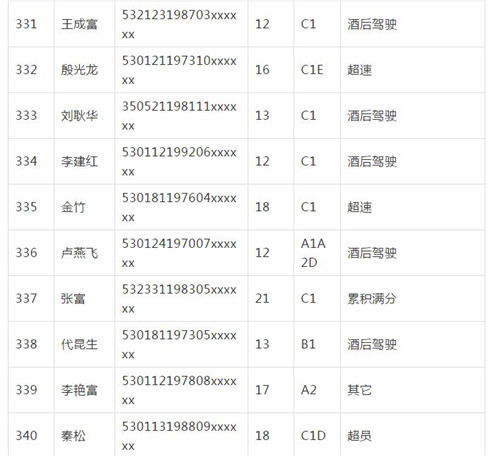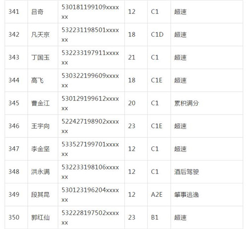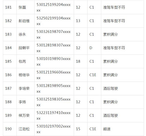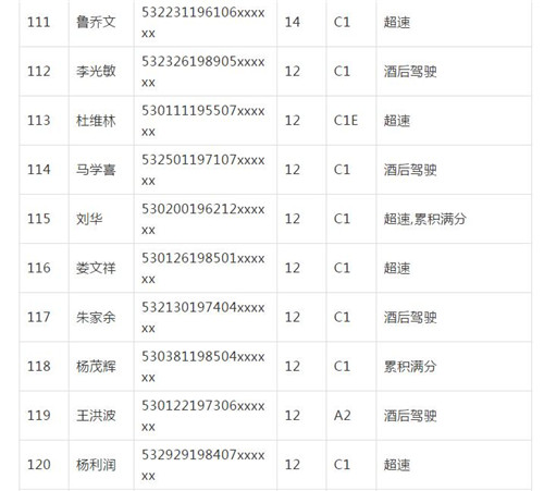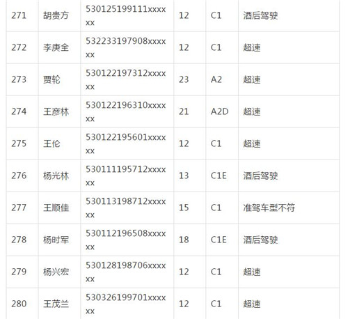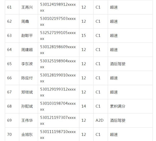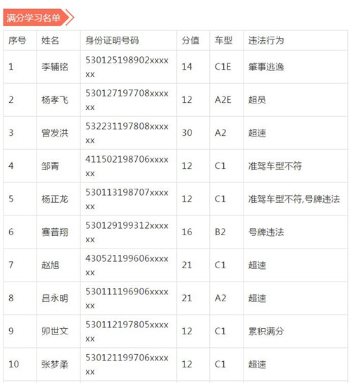 11月18日,記者從昆明交警了解到,本周共有456人被扣滿分學(xué)習(xí),其中超速酒駕者占一半,另有43人駕照被注銷或降級,以下是具體名單: