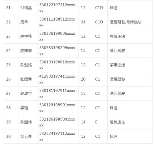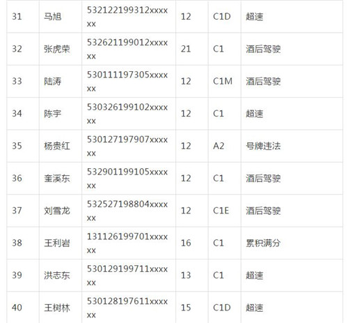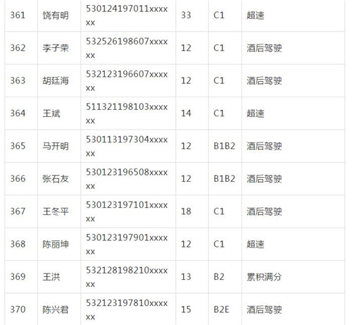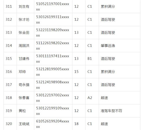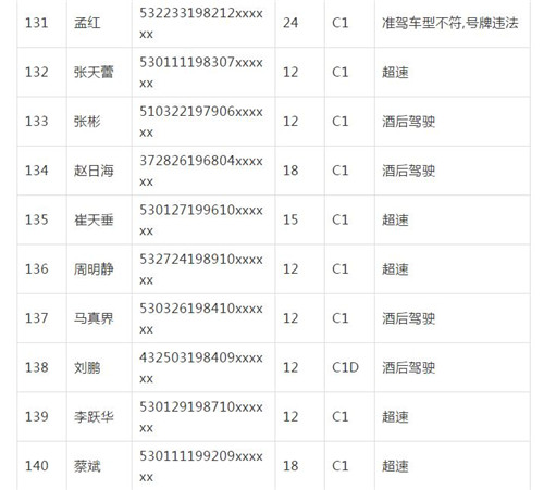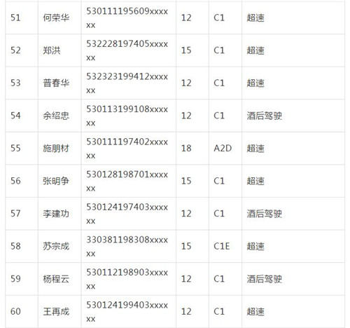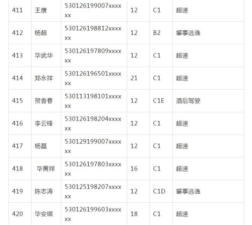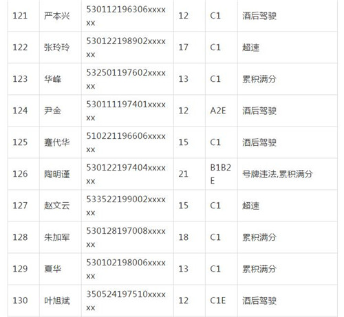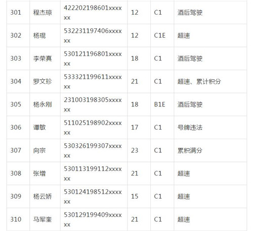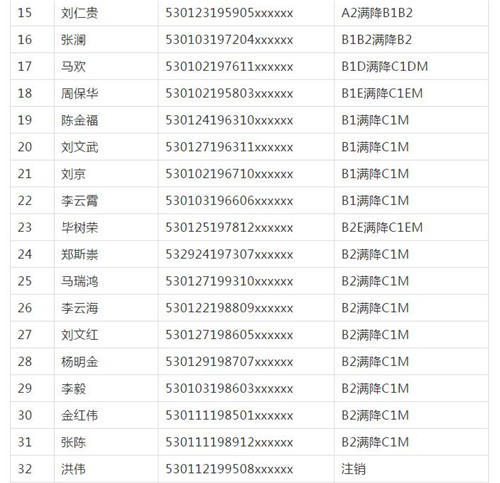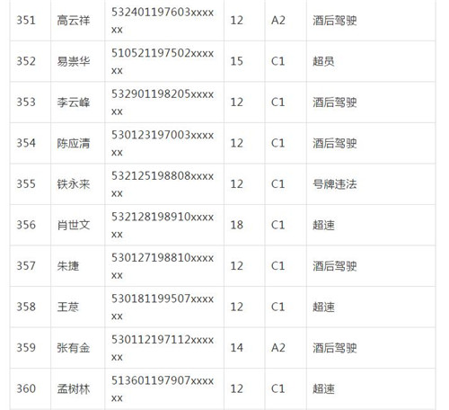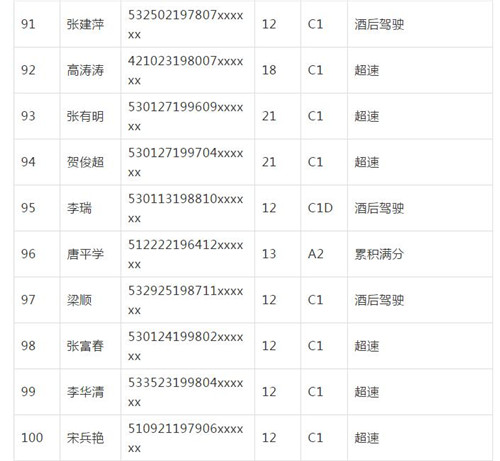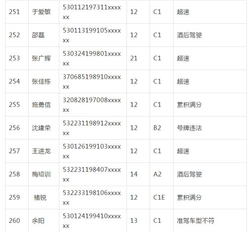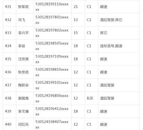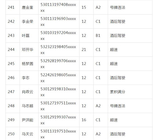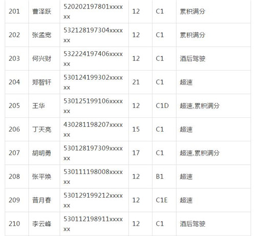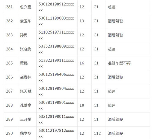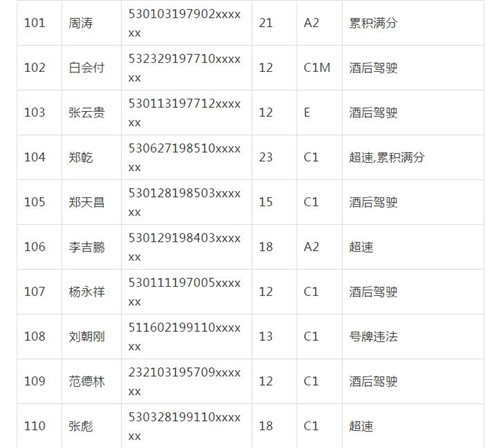 11月18日,記者從昆明交警了解到,本周共有456人被扣滿分學(xué)習(xí),其中超速酒駕者占一半,另有43人駕照被注銷或降級,以下是具體名單: