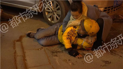 當(dāng)天晚上,在昆明市五華區(qū)滇緬大道和黑林鋪前街交叉口,一名外賣小哥騎車載著女友沿人行道邊行駛,在路口拐角處,和準(zhǔn)備拐彎的出租車迎面相撞,外賣小哥當(dāng)場被卷到車身下。