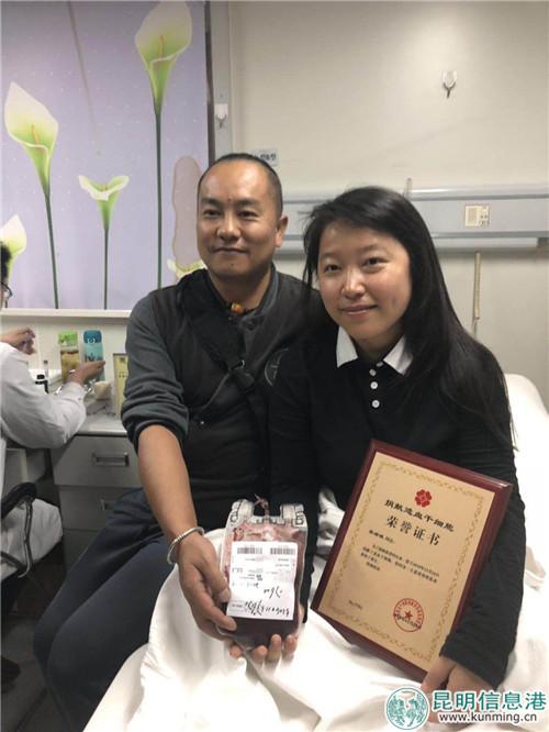 昆明信息港訊 記者李紅鸞 11月16日,云南80后的愛心媽媽張女士躺在云大醫(yī)院的的血液科病房里,鮮紅的血液緩緩從她體內流進血細胞分離機,為千里之外的6歲幼童捐贈造血干細胞,為他送去生的希望。張女士也成為了云南省第176例成功捐獻造血干細胞者。