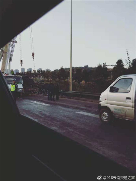 據(jù)了解,事故已經(jīng)于9時(shí)10分許撤除,但積壓車輛較多,正在有序通過,車流正逐漸恢復(fù)正常。(圖片來源于918云南交通之聲)