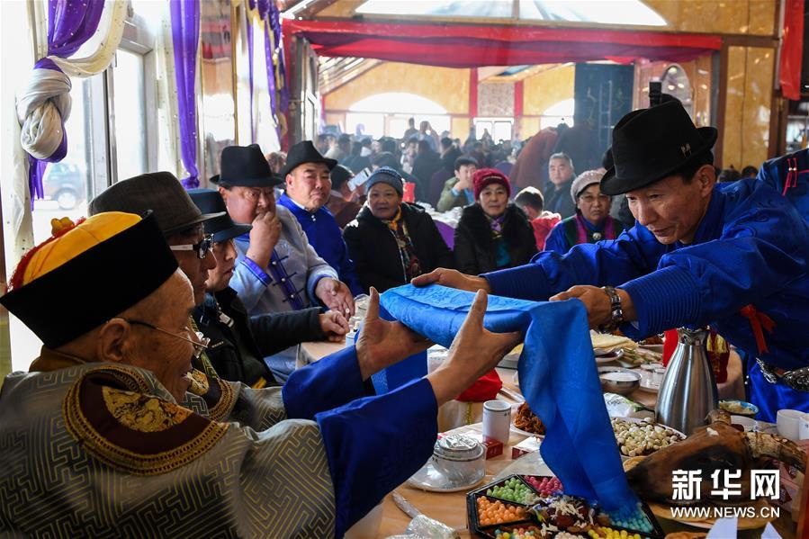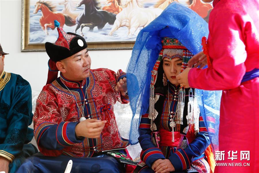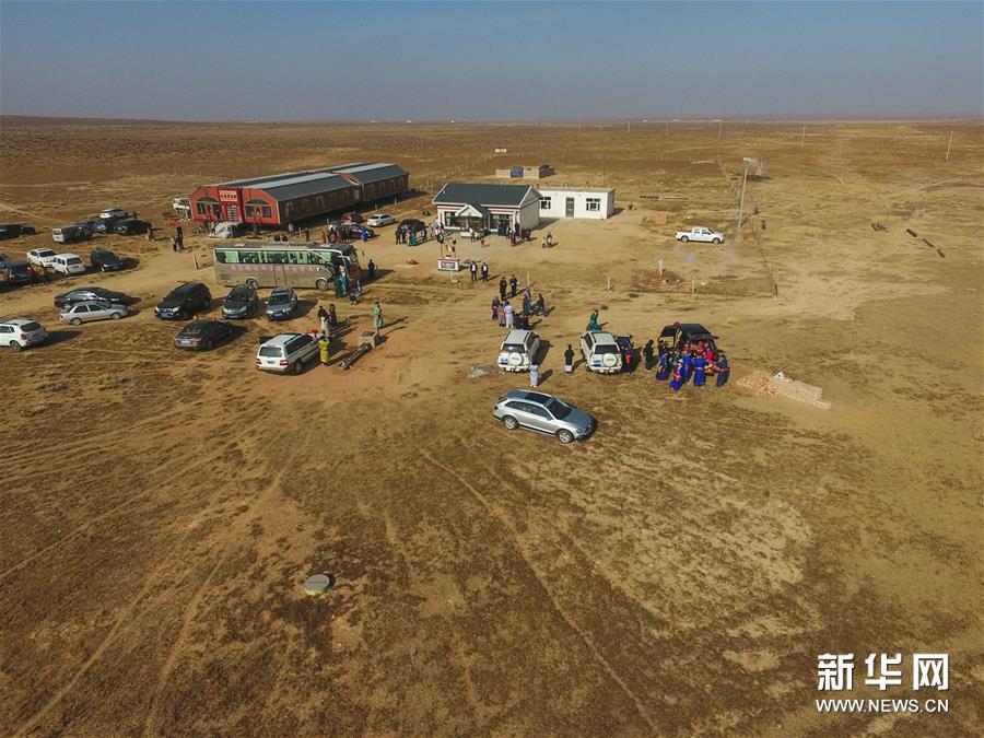 11月16日,在內(nèi)蒙古鄂爾多斯市鄂托克前旗烏提嘎查,男方親屬帶著禮品前來參加婚禮,新郎父母在門外迎接。 “鄂爾多斯婚禮”是內(nèi)蒙古鄂爾多斯地區(qū)傳統(tǒng)民俗,形成于蒙元時(shí)期,至今已流傳700多年,目前仍然比較完整地保留著鄂爾多斯婚禮的哈達(dá)定親、佩弓娶親、獻(xiàn)羊祝酒等程序?;槎Y通過優(yōu)美的歌舞和隆重的儀式,表達(dá)對美好生活的追求。2006年,“鄂爾多斯婚禮”被列入國家級非物質(zhì)文化遺產(chǎn)名錄。 新華社記者虞東升/攝