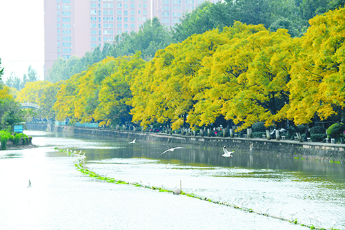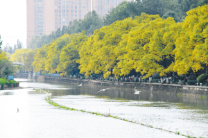 初冬清晨的篆塘公園內(nèi)海鷗飛舞,隨處可見市民、游人漫步其中,川流而過的大觀河呈現(xiàn)出一派水清岸綠的美麗景象。