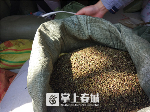 當(dāng)?shù)剞r(nóng)戶向記者展示士今年青花椒的收成。