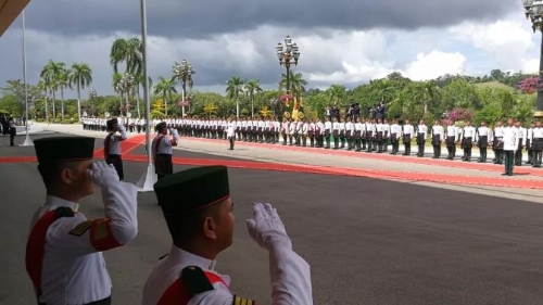 19號(hào)上午11點(diǎn)左右,習(xí)近平在努洛伊曼王宮出席了文萊蘇丹哈桑納爾舉行的歡迎儀式。
