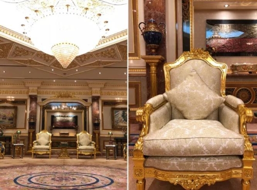 △習(xí)近平就是在這個(gè)房間同文萊王室成員交談。右為習(xí)近平的坐席。(央視記者馬亞陽拍攝)