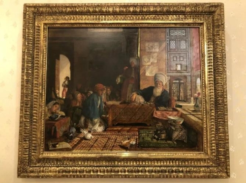 △《時(shí)政新聞眼》發(fā)現(xiàn)一幅19世紀(jì)英國東方主義畫家約翰·弗雷德里克·劉易斯的油畫《一家土耳其學(xué)校在開羅的近處》。(央視記者馬亞陽拍攝)