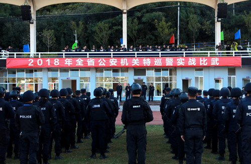 昆明信息港訊 記者合宇聰 11月20日,云南省公安機(jī)關(guān)特巡警實戰(zhàn)比武開幕儀式在昆明市公安局特警支隊舉行,拉開了2018年全省公安特巡警實戰(zhàn)比武競賽的帷幕。