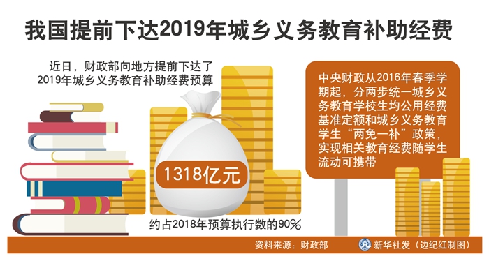 我國(guó)提前下達(dá)2019年城鄉(xiāng)義務(wù)教育補(bǔ)助經(jīng)費(fèi) 新華社發(fā)邊紀(jì)紅制圖