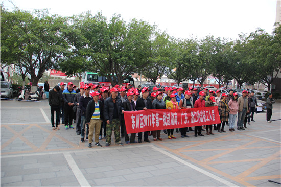 東川區(qū)2017年第一批農(nóng)村勞動(dòng)力赴湖南、廣東、浙江轉(zhuǎn)移就業(yè)歡送。