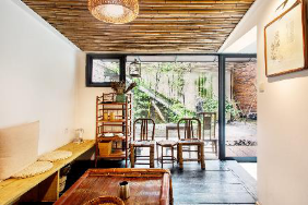 成都人的慢生活深入在每個(gè)人的骨子里,體現(xiàn)在生活的方方面面。這座悠閑的竹林傳統(tǒng)庭院,愛彼迎房東給它取名為“竹澗”。屋內(nèi)的一切設(shè)施幾乎都由竹子制成,隨處可見的桌椅板凳、竹燈、竹墊,甚至還有竹子制成的房頂,一切都是自然原本的樣子,素雅而清新,讓人一走進(jìn)便能沉靜下來(lái)。坐在屋內(nèi),看著眼前的一桌一椅,仿佛耳邊能聽到有潺潺溪水流過。奇妙的是,走出這里,會(huì)發(fā)現(xiàn)它其實(shí)坐落在熱鬧的玉林,這里是成都充滿了煙火氣息的市井之地,遍地的吃喝玩樂,酒吧眾多,時(shí)尚小店林立,充滿著成都獨(dú)有的舒適而溫暖的氣息。