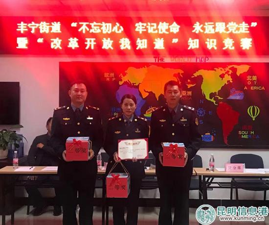昆明信息港訊 記者昝娟娟 11月22日下午,昆明路政支隊(duì)一大隊(duì)、四大隊(duì)和石安大隊(duì)各派出一名選手組成路政大隊(duì)黨組織代表隊(duì),參加豐寧街道辦事處組織的“不忘初心、牢記使命 永遠(yuǎn)更黨走”暨“改革開(kāi)放我知道”黨建知識(shí)競(jìng)賽活動(dòng)。