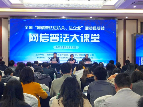 昆明信息港訊 實(shí)習(xí)記者李貴芳 “從1994年至今,中國(guó)互聯(lián)網(wǎng)立法大致經(jīng)歷了三個(gè)階段?!?1月22日上午,中國(guó)信息通信研究院互聯(lián)網(wǎng)法律研究中心執(zhí)行主任方禹,在全國(guó)“網(wǎng)信普法進(jìn)機(jī)關(guān)、進(jìn)企業(yè)”昆明站活動(dòng)開幕式上這樣說。