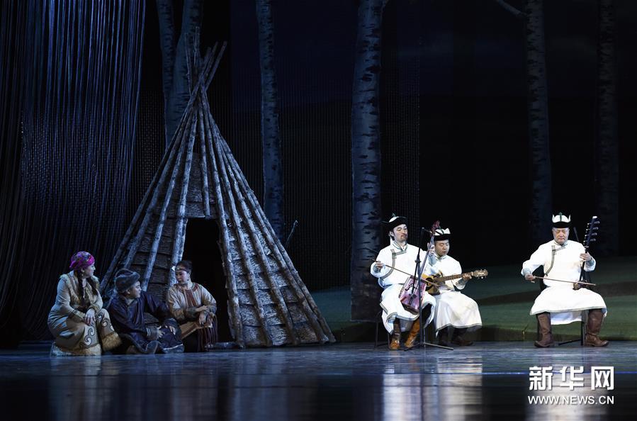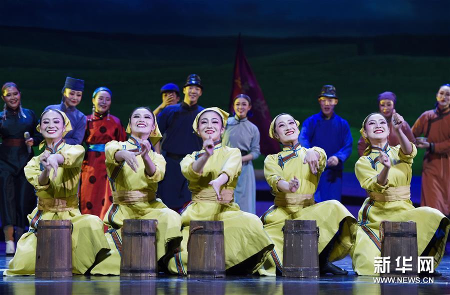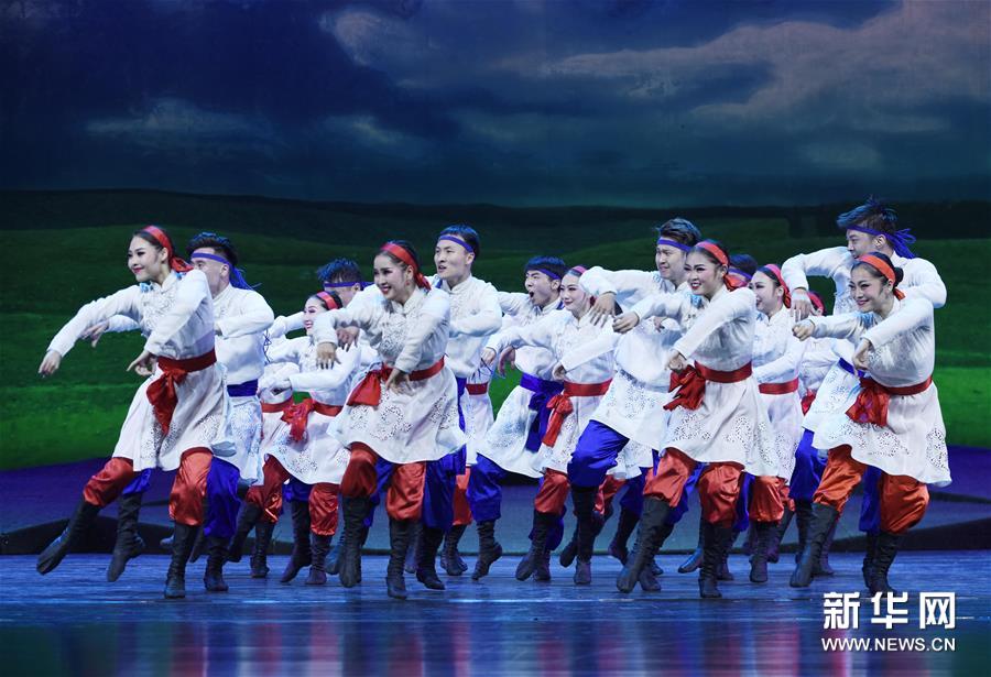 11月21日,演員在情景歌舞《草原上的烏蘭牧騎》中表演舞蹈。 當(dāng)晚,由內(nèi)蒙古民族藝術(shù)劇院直屬烏蘭牧騎創(chuàng)排的民族情景歌舞《草原上的烏蘭牧騎》在呼和浩特市上演?!恫菰系臑跆m牧騎》集歌唱、舞蹈、朗誦等藝術(shù)表現(xiàn)形式于一體,講述了烏蘭牧騎為農(nóng)牧民送歡樂的感人故事。(新華社 王正)