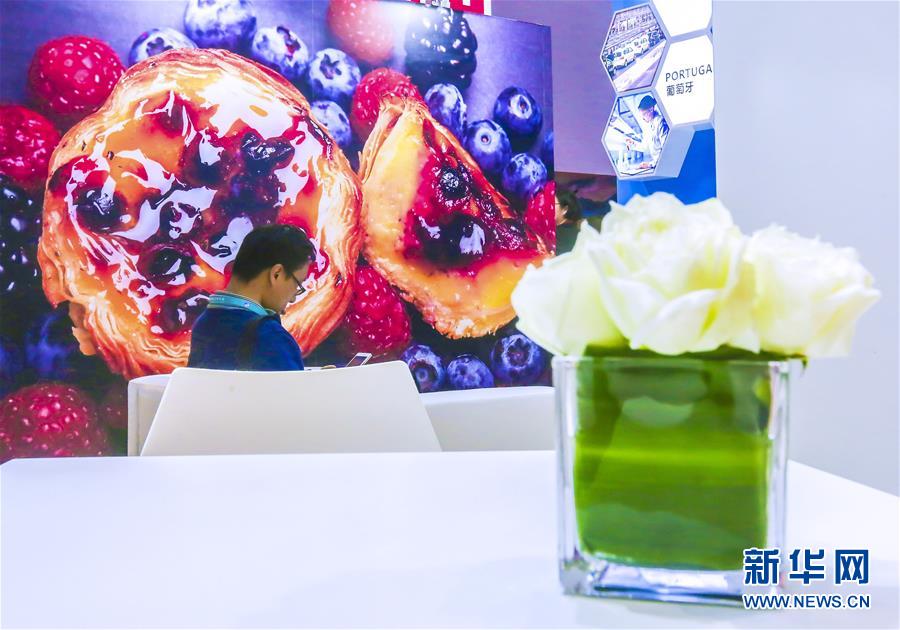 2018年11月6日,在中國(guó)上海,一位男士坐在中國(guó)國(guó)際進(jìn)口博覽會(huì)的葡萄牙展區(qū)內(nèi)。新華社記者殷剛/攝