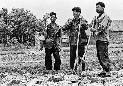 1978年11月,小崗生產(chǎn)隊農(nóng)民嚴(yán)立坤(左)、嚴(yán)俊昌(中)、嚴(yán)立學(xué)(右)站在自己承包的土地上,心中充滿希望。資料圖片