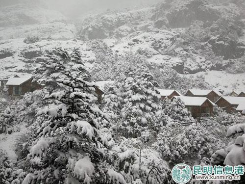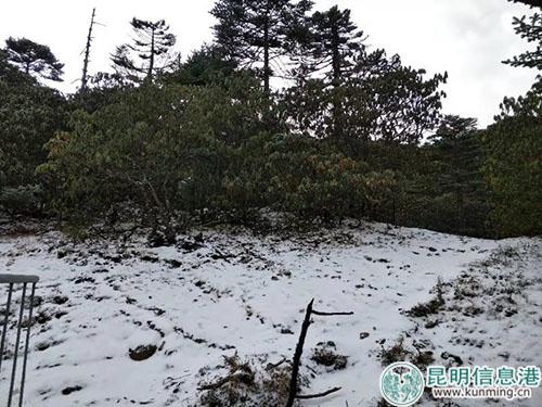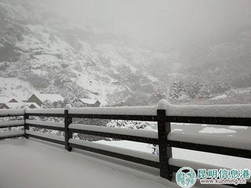 昆明信息港訊 記者李紅鸞 昆明2018年入冬后的第一場雪,在11月25日落在了轎子雪山上,比2017年11月3號下的首場雪,足足晚了22天。